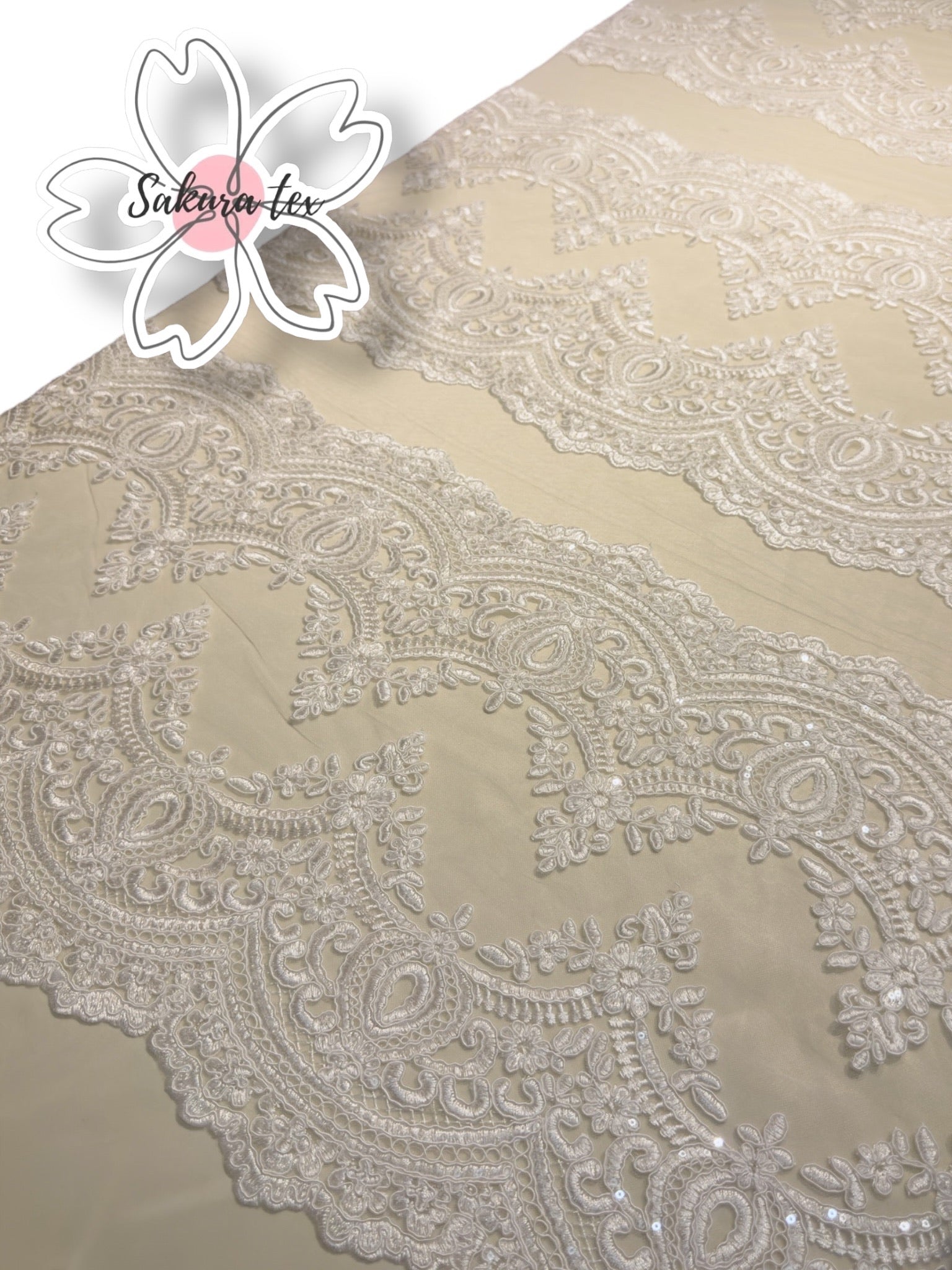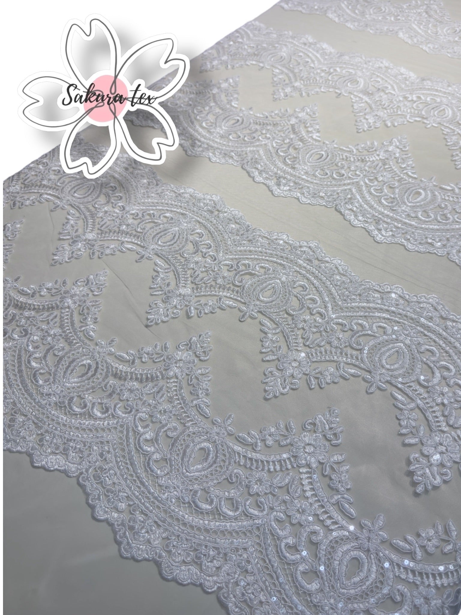 Blonda Bordada con 6 Tiras y lentejuelas de 24 cm cada blonda. De 1 metro le salen 6 metros lineales!