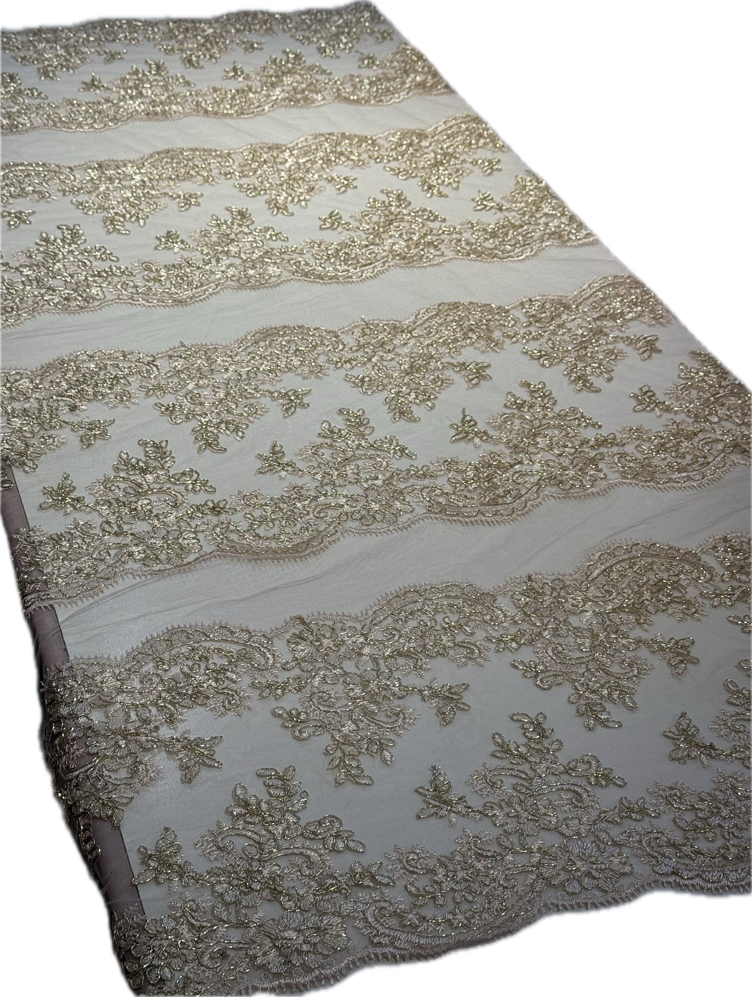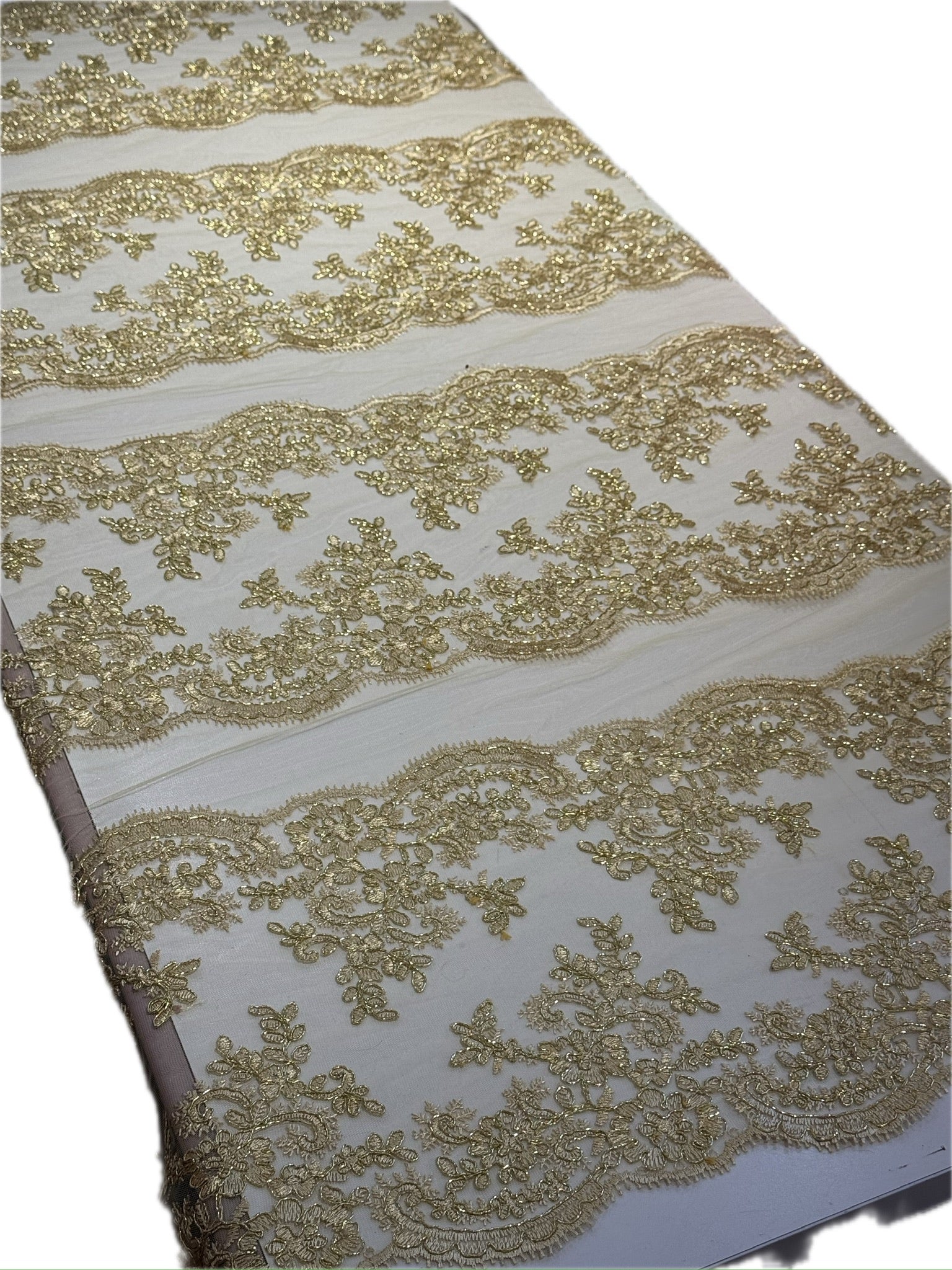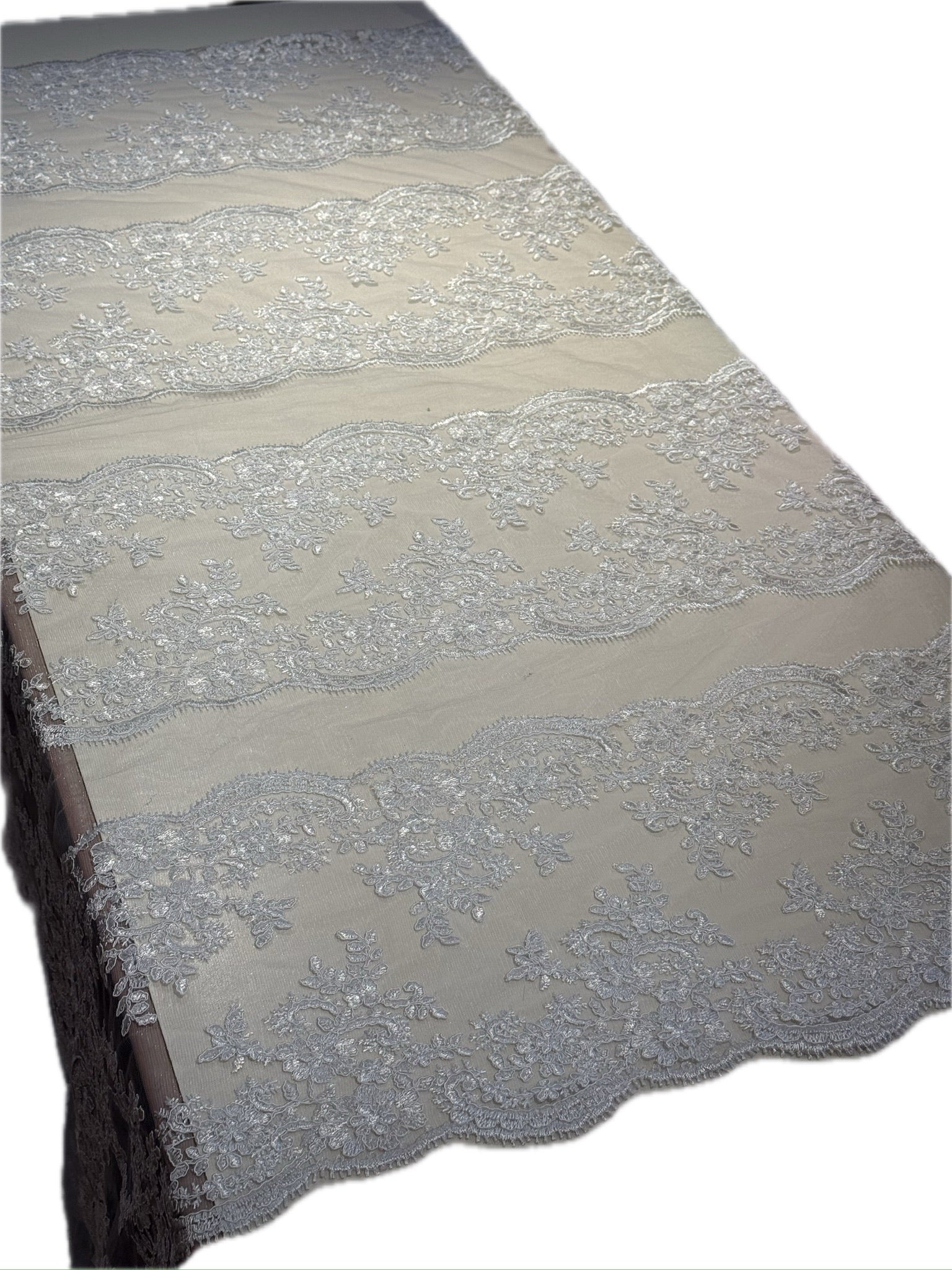 Blonda Bordada con lentejuelas y 8 Tiras de 15cm cada blonda. De 1 metro le salen 8 metros lineales!