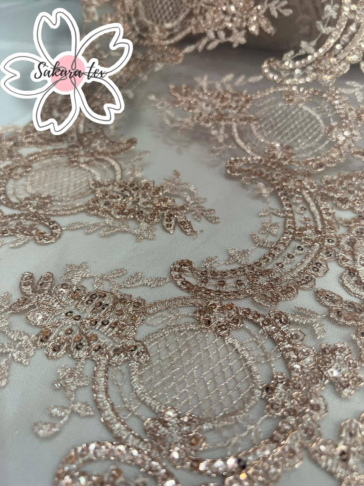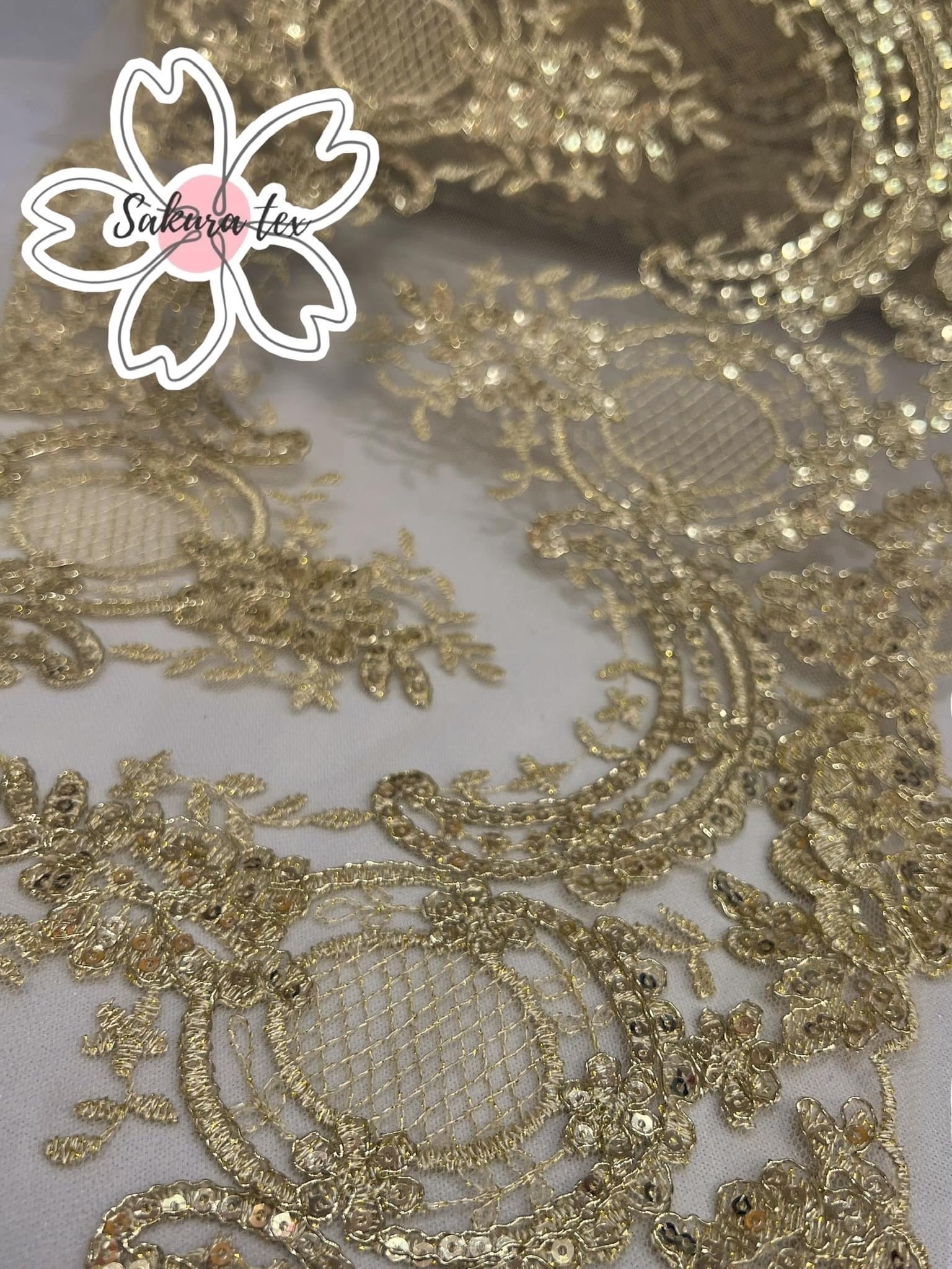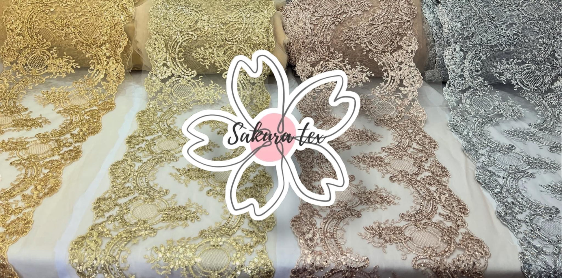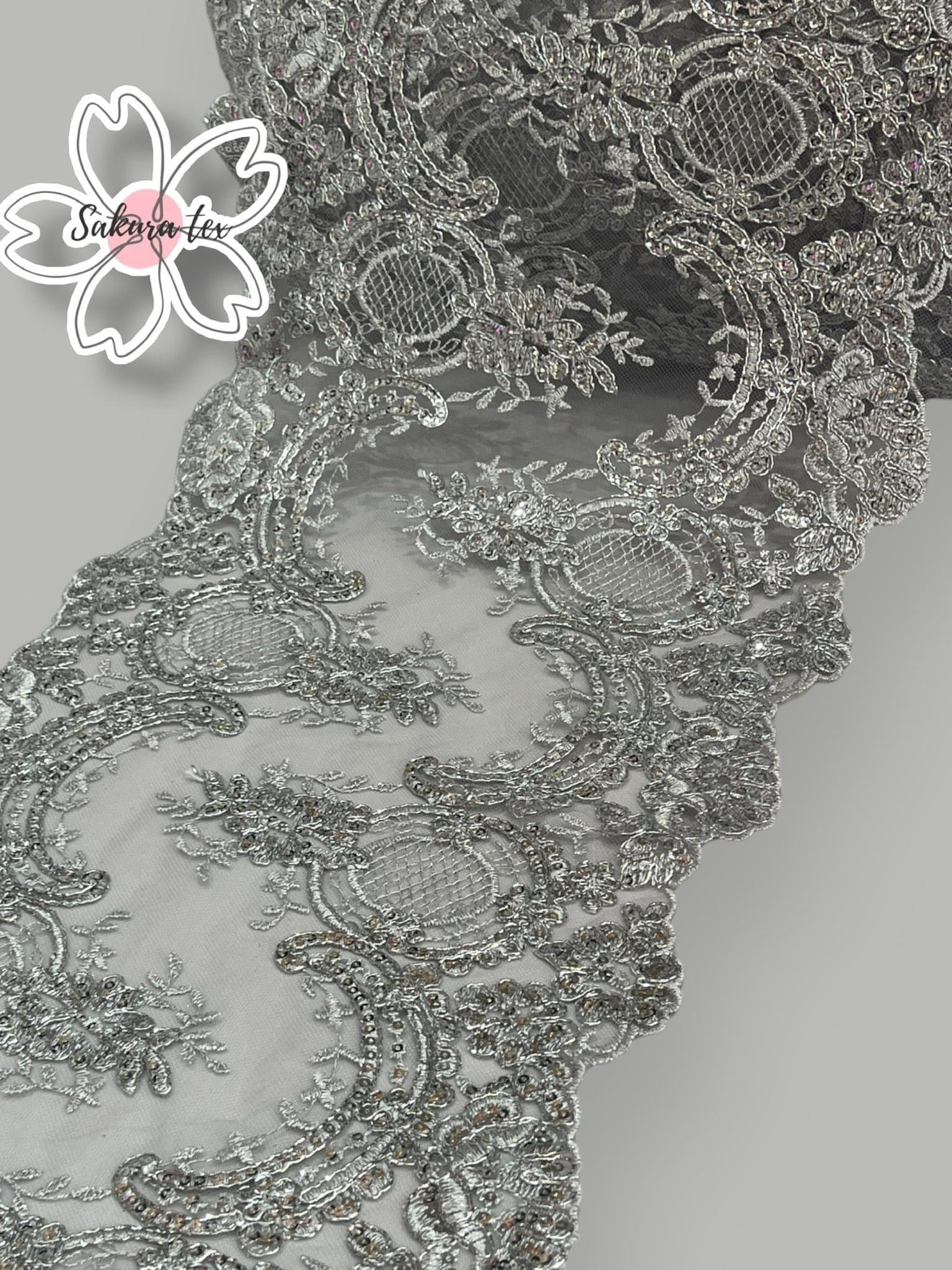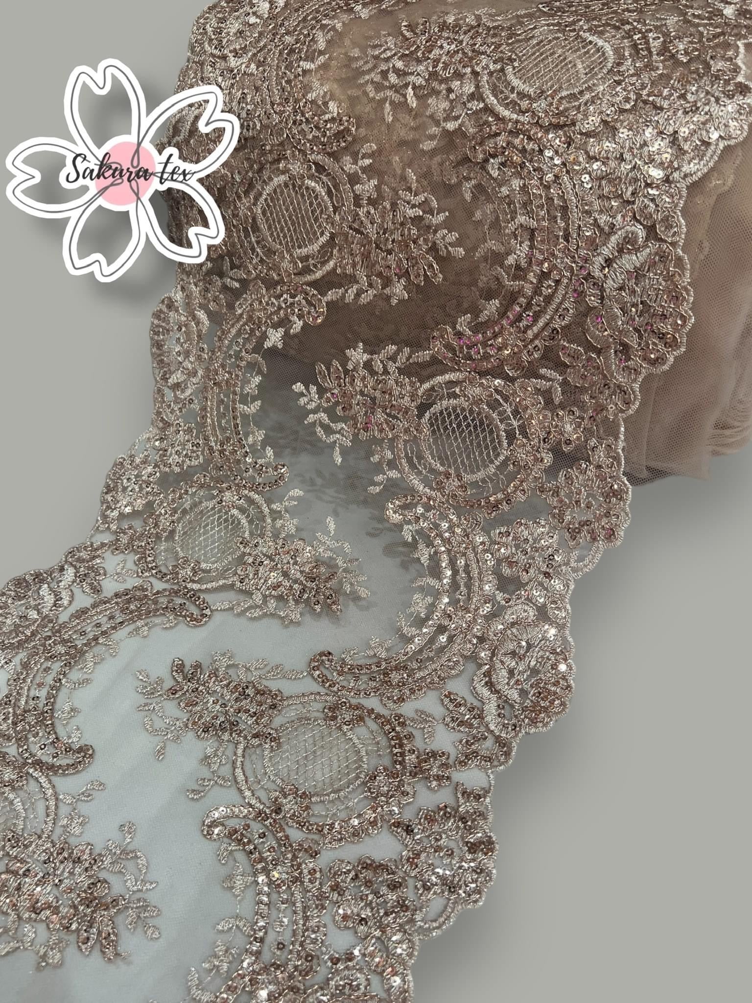 Blonda Bordada con lentejuelas y 2 Tiras de 17cm cada blonda. De 1 metro le salen 2 metros lineales!