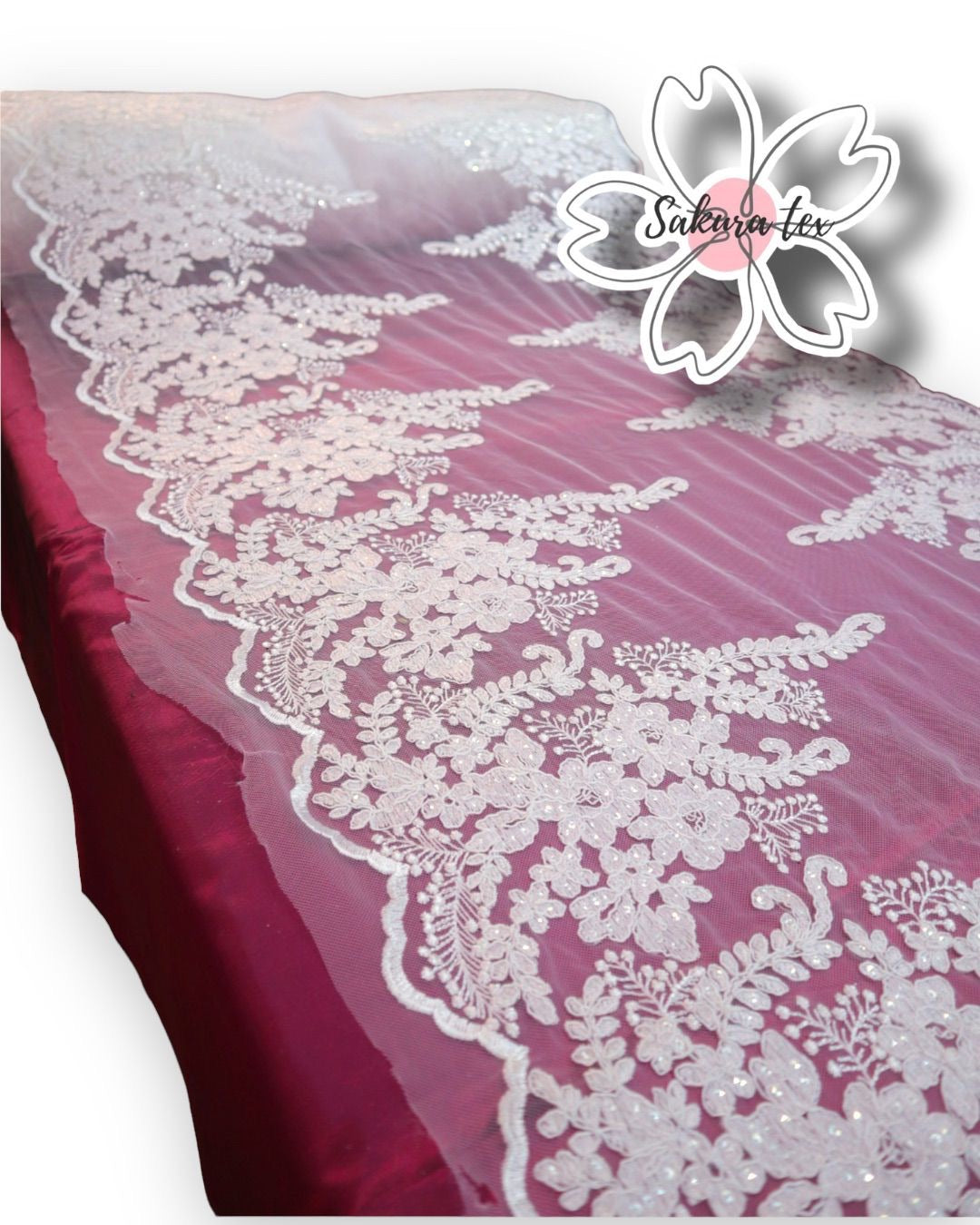 Blonda Bordada con lentejuelas y 2 Tiras de 32cm cada blonda. De 1 metro le salen 2 metros lineales!