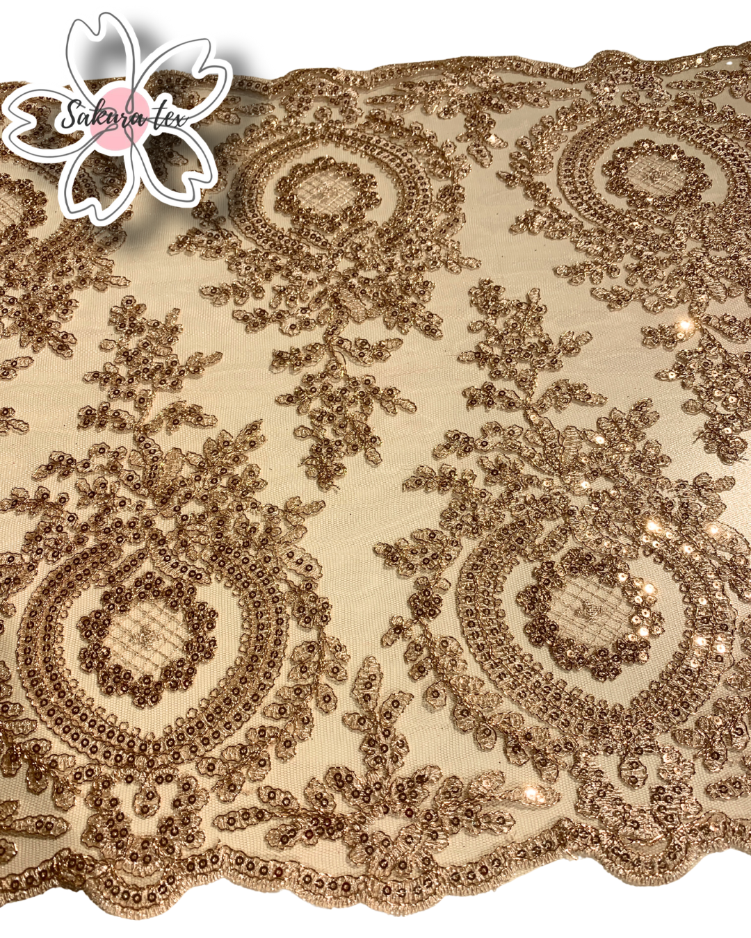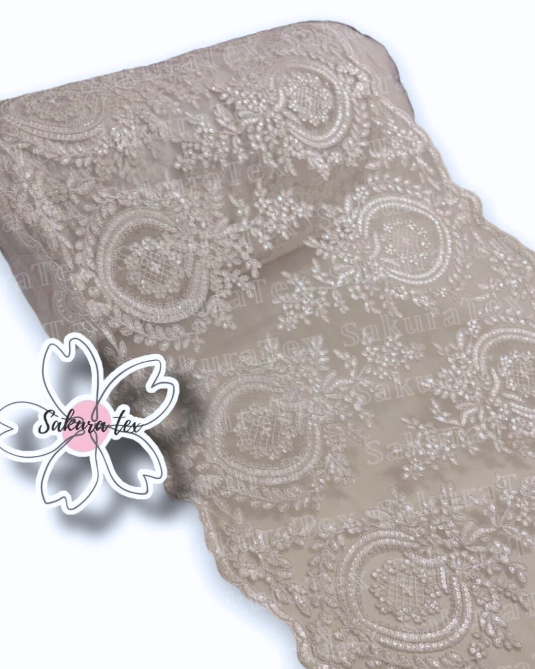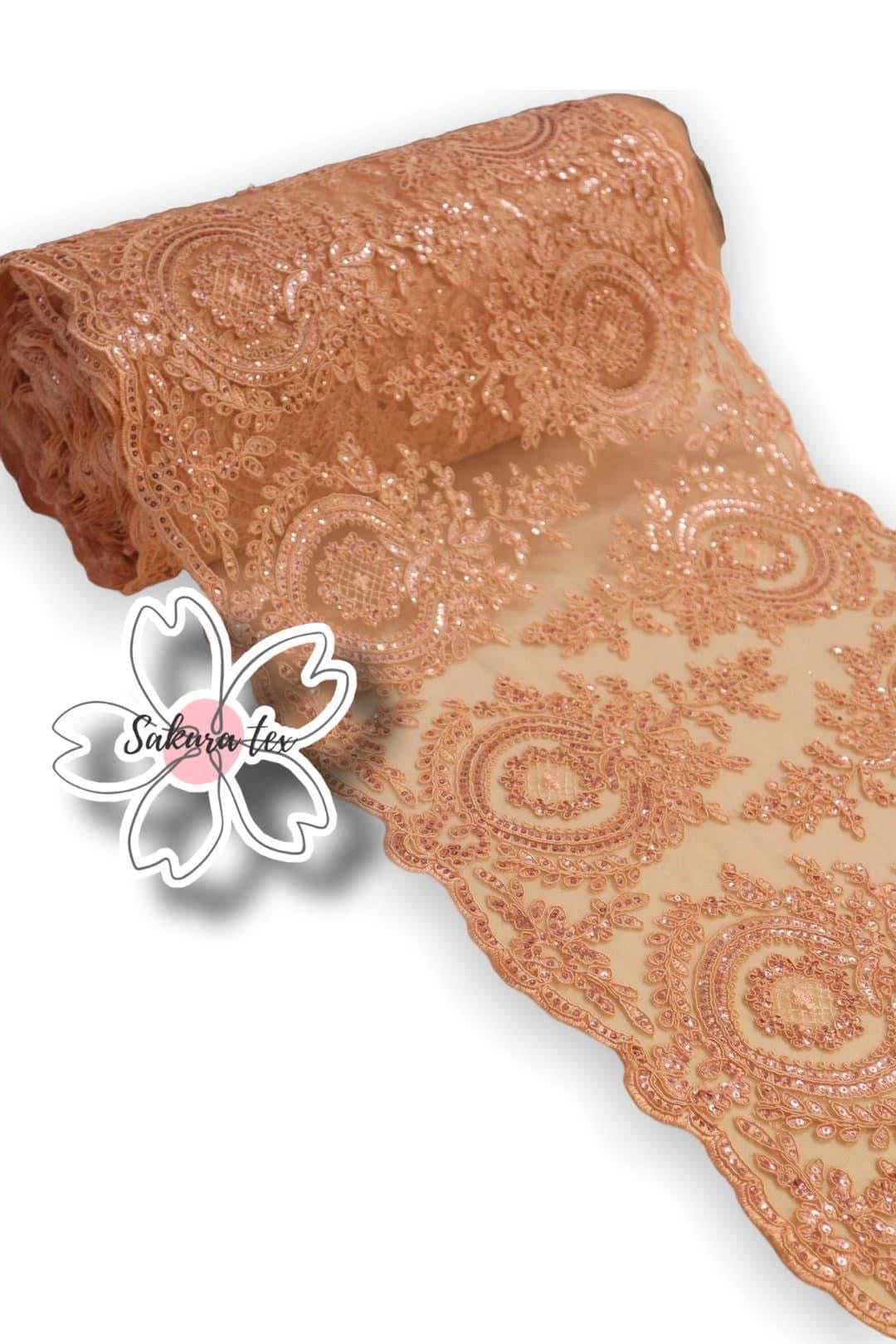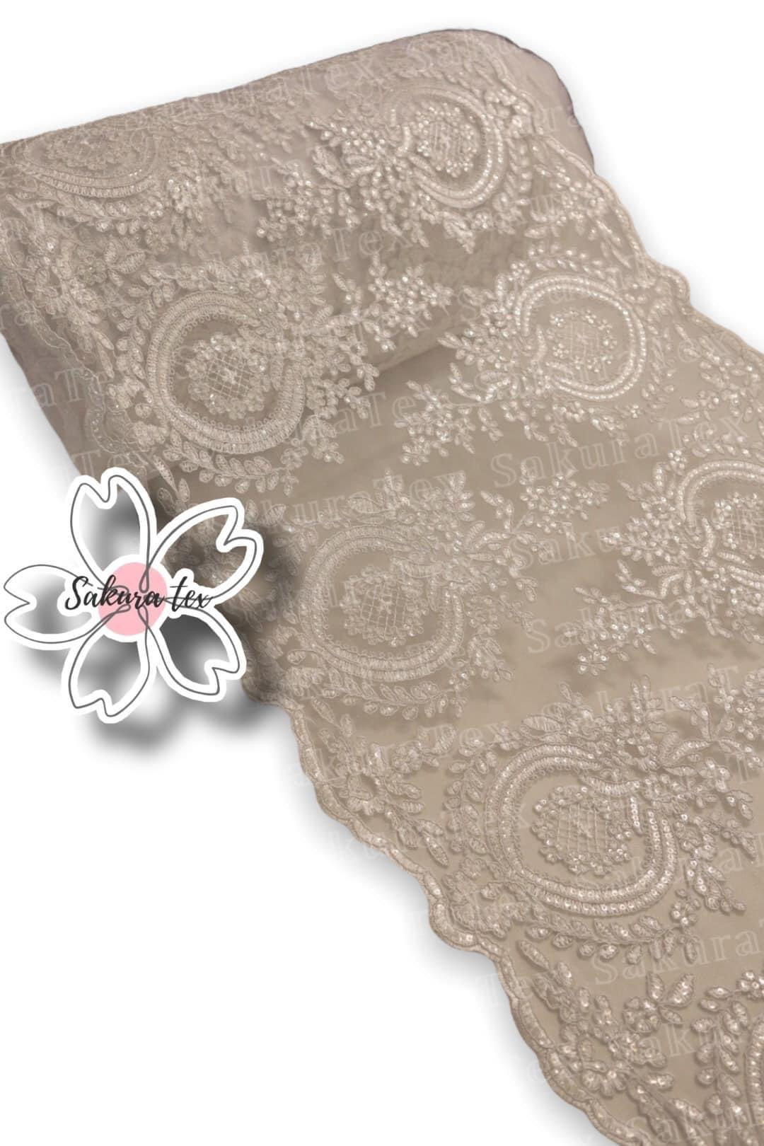 Blonda Bordada con lentejuelas y 2 Tiras de 25cm cada blonda. De 1 metro le salen 2 metros lineales!