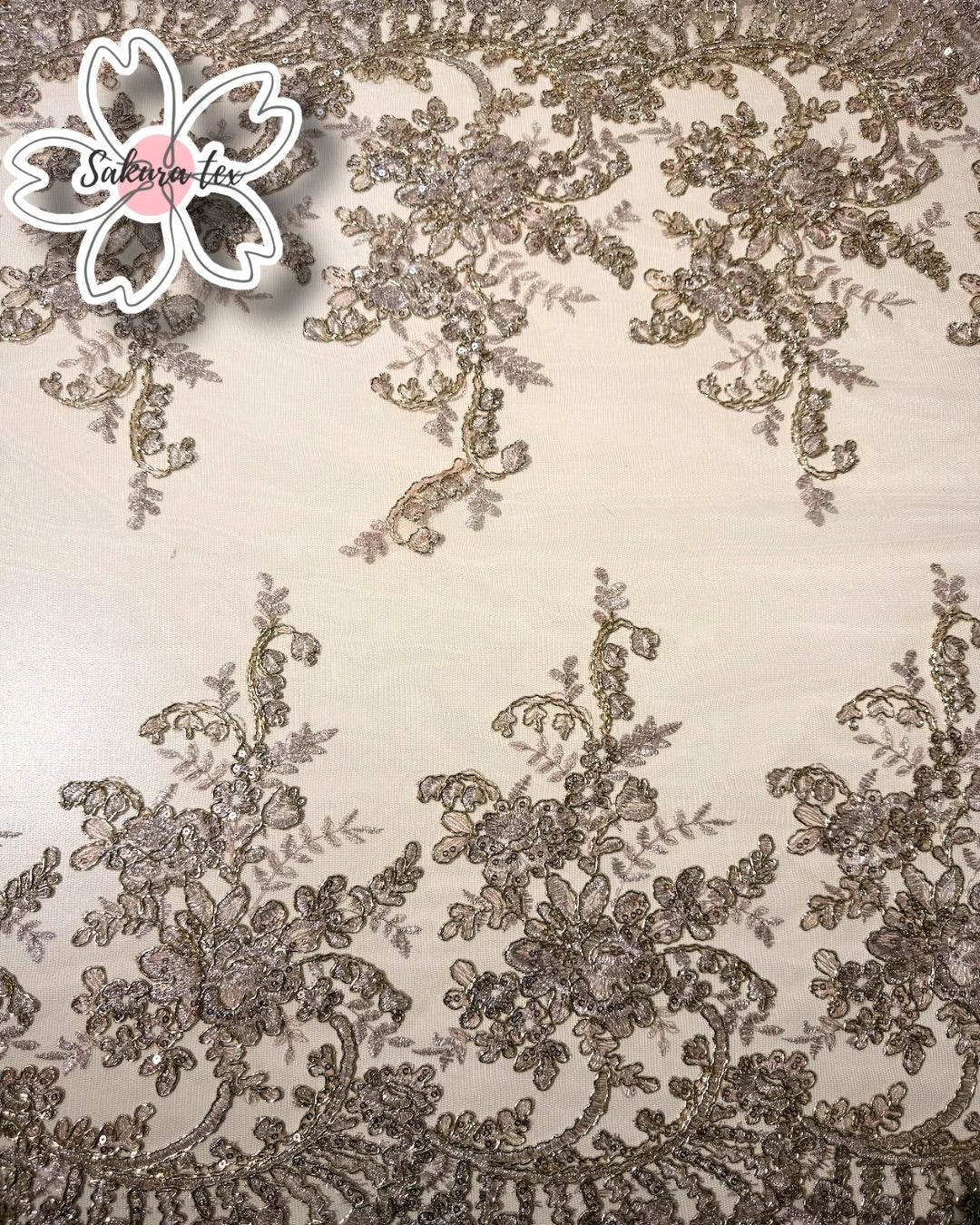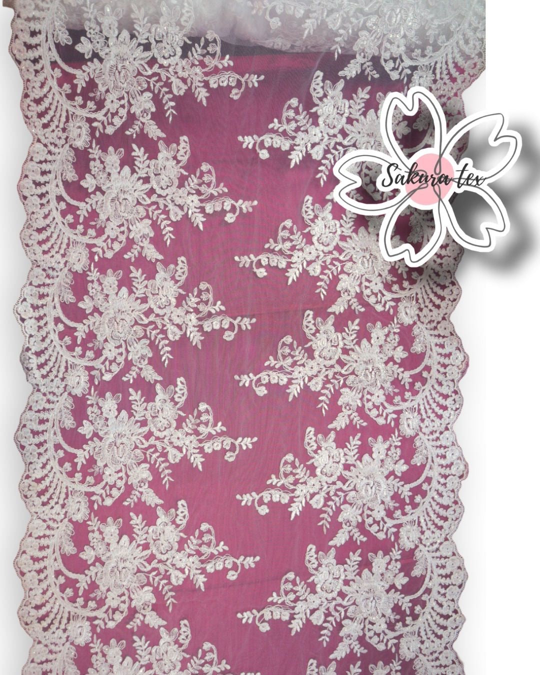 Blonda Bordada con lentejuelas y 2 Tiras de 32cm cada blonda. De 1 metro le salen 2 metros lineales!