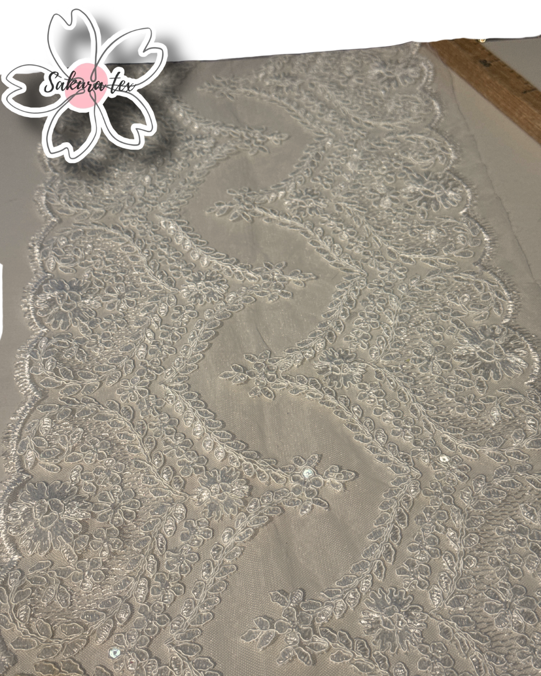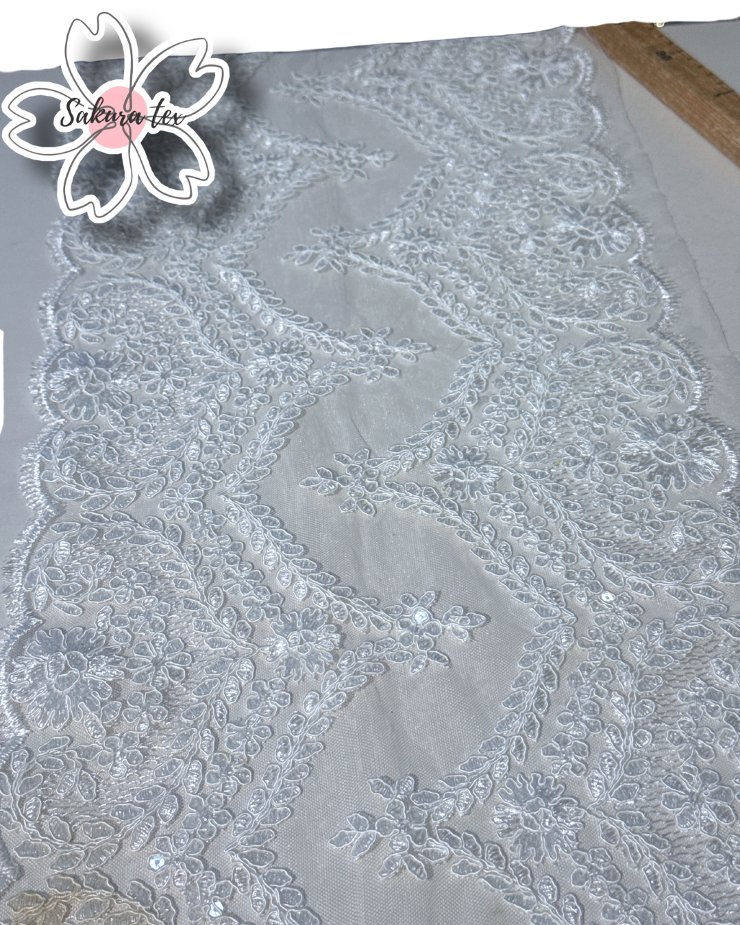 Blonda Bordada con lentejuelas y 2 Tiras de 16cm cada blonda. De 1 metro le salen 2 metros lineales!