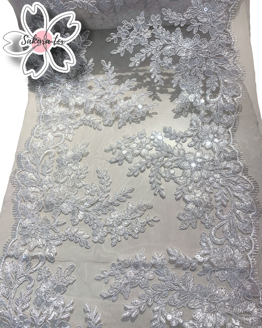Blonda Bordada con lentejuelas y 2 Tiras de 16cm cada blonda. De 1 metro le salen 2 metros lineales!