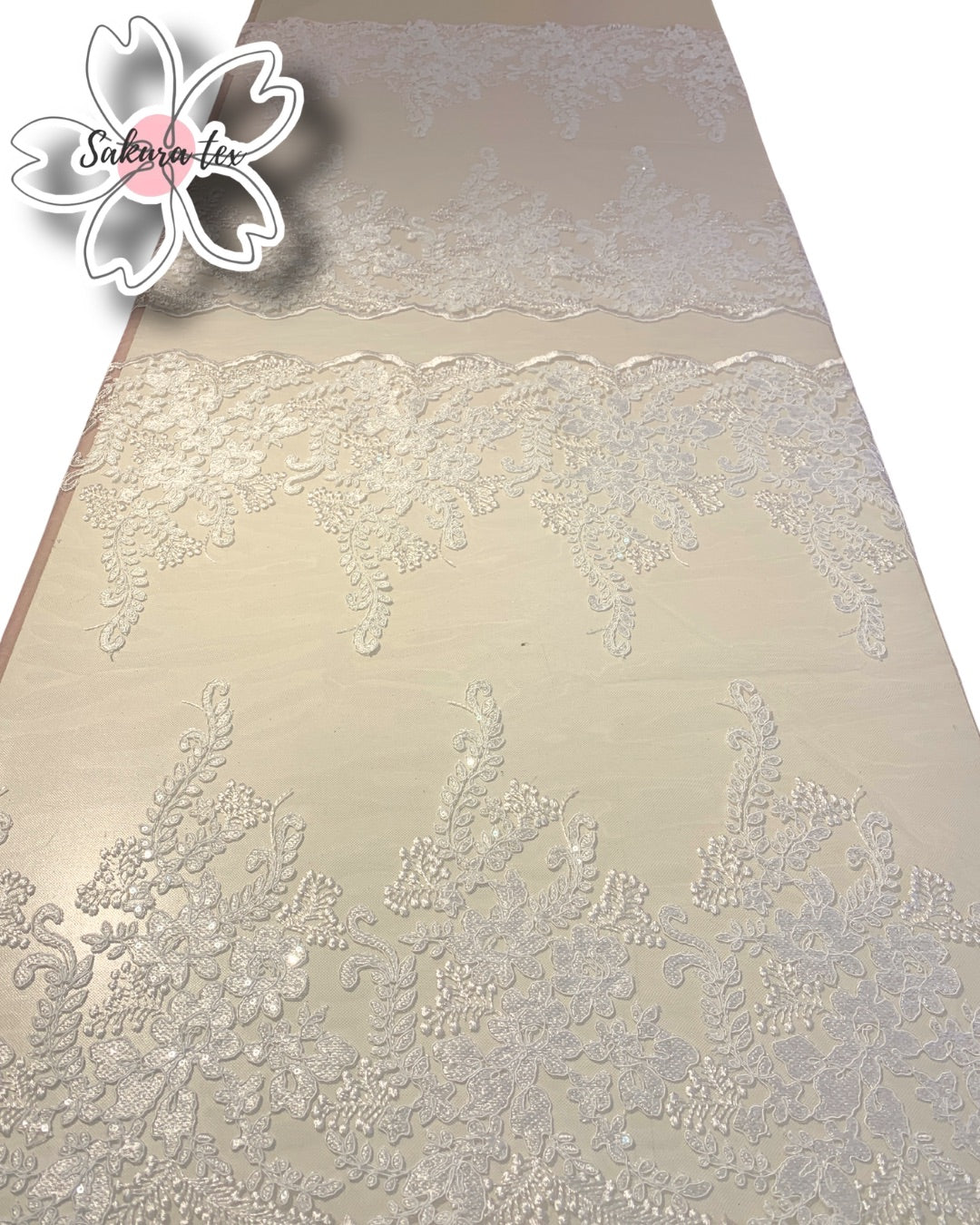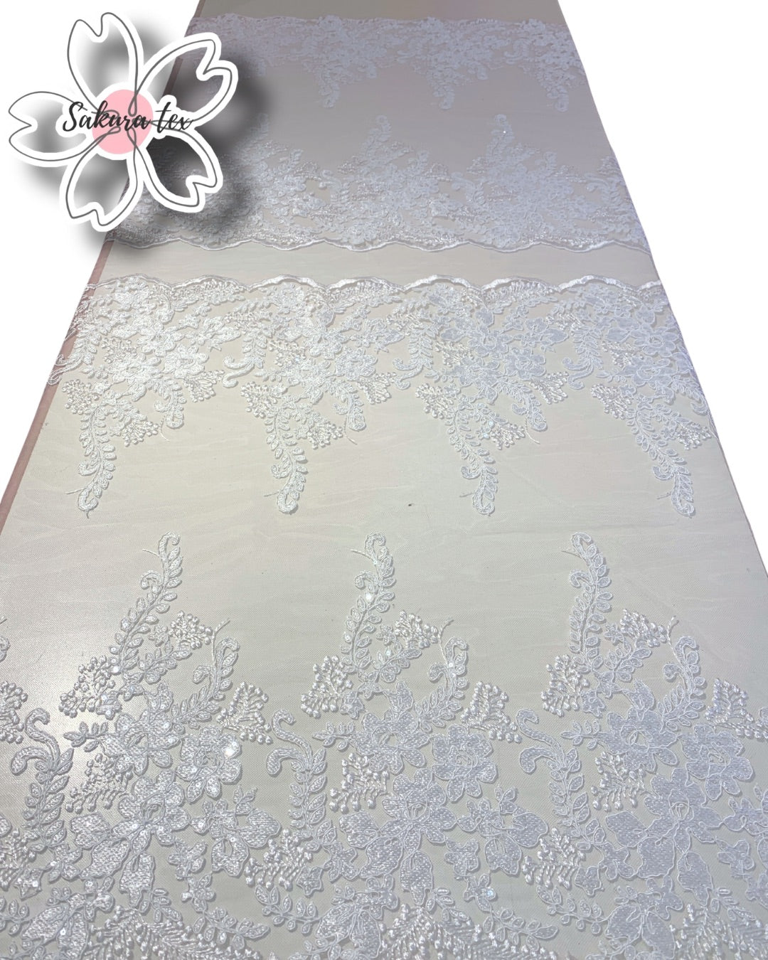 Blonda Bordada con lentejuelas y 4 Tiras de 32cm cada blonda. De 1 metro le salen 4 metros lineales!
