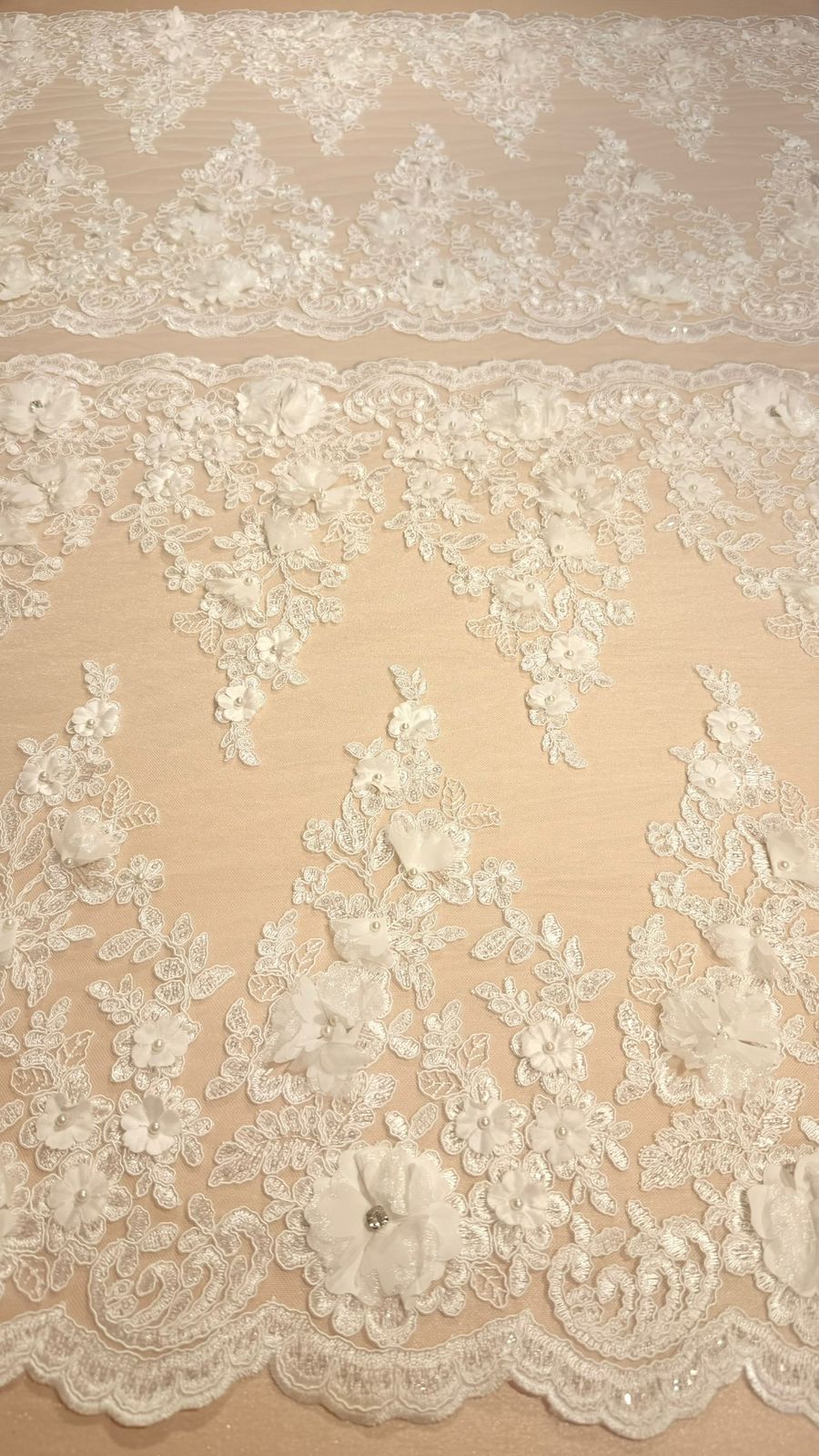 Blonda de 4 Tiras con Flores 3D, De 1m le salen 4m lineales.
