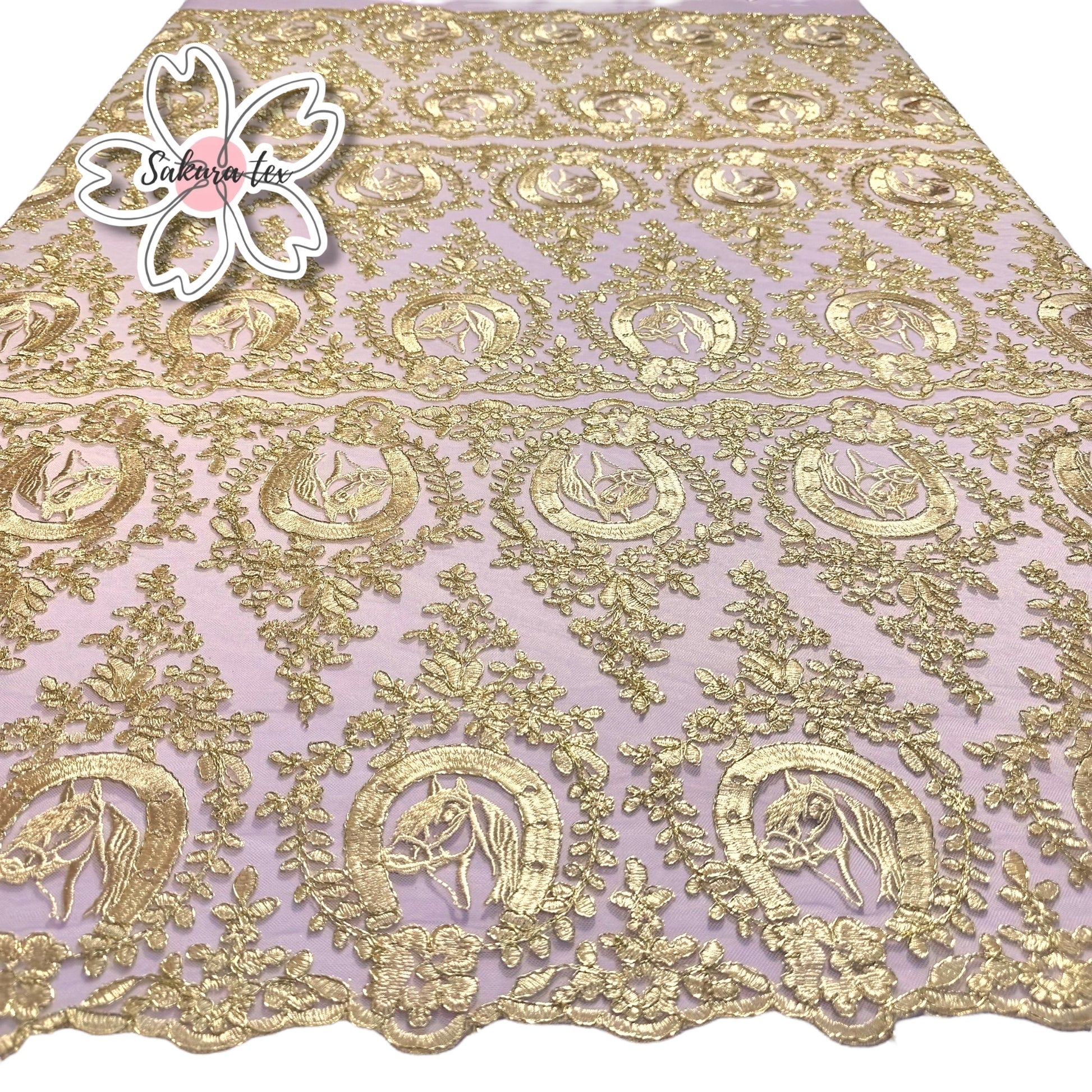 Blonda Bordada de caballos y Herraduras con 6 Tiras de 25cm cada una. De 1m le salen 6m lineales.