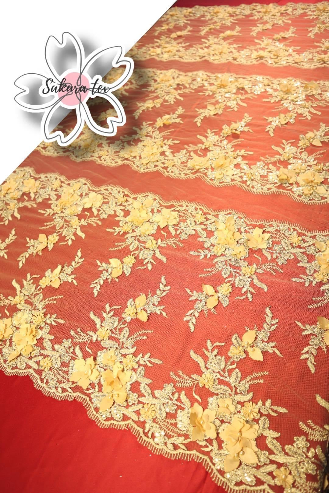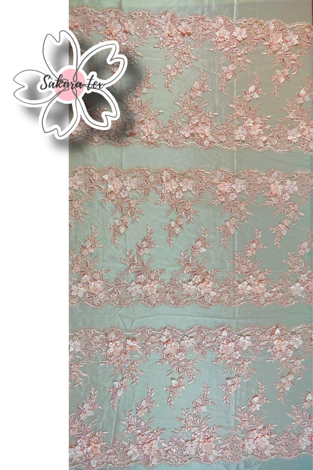 Blonda de 10 Tiras con Flores 3D, De 1m le salen 6m lineales.
