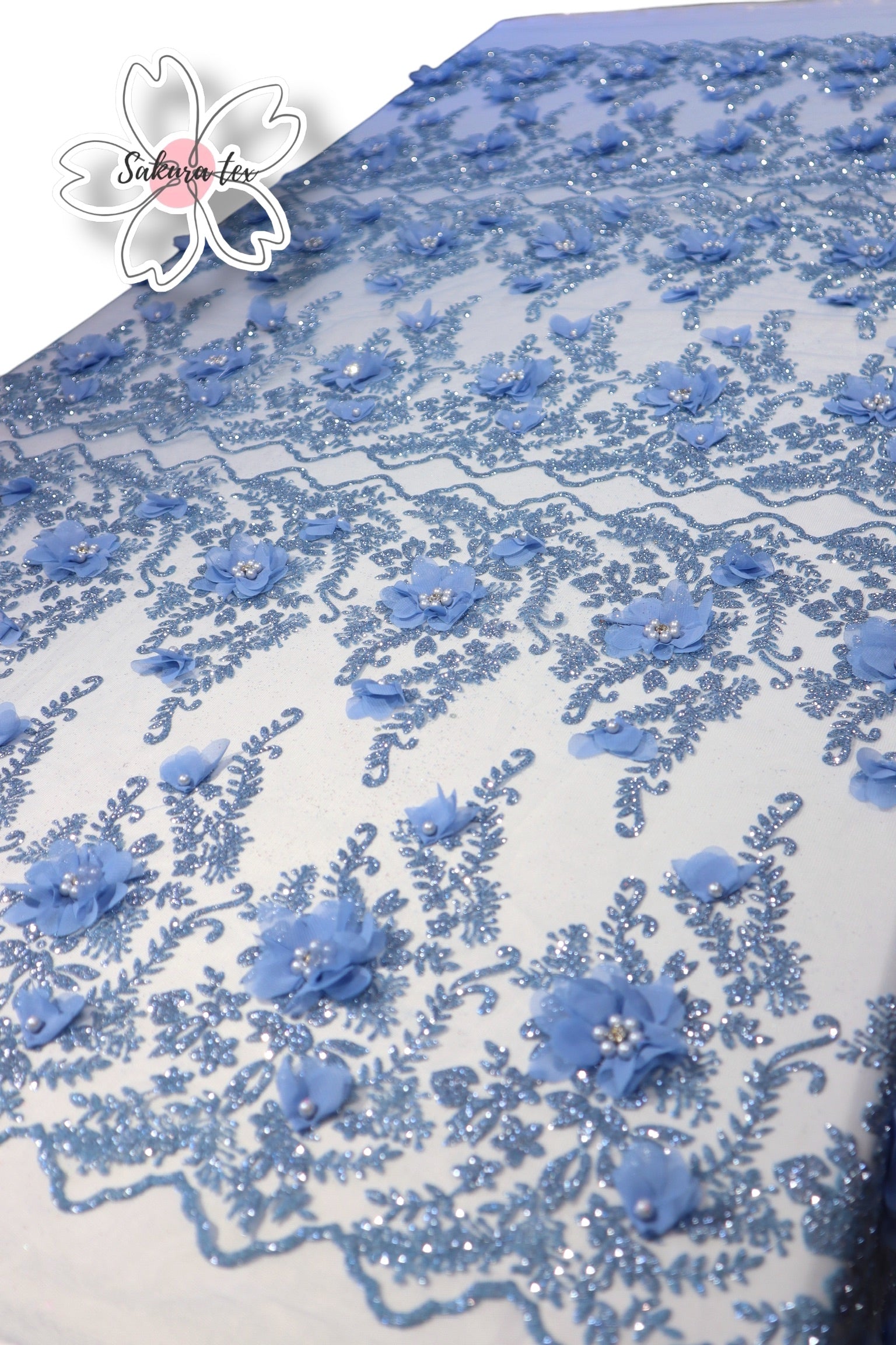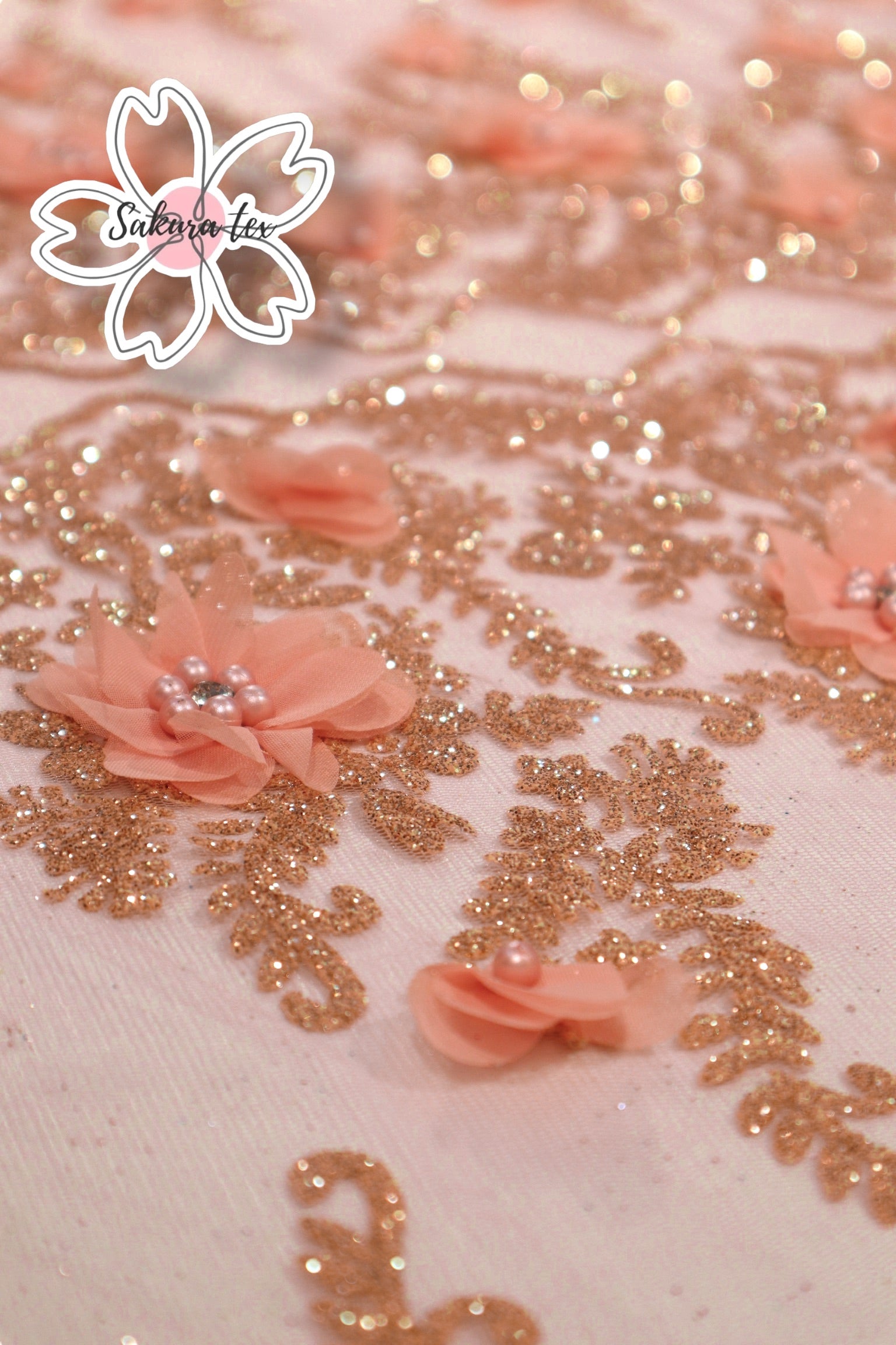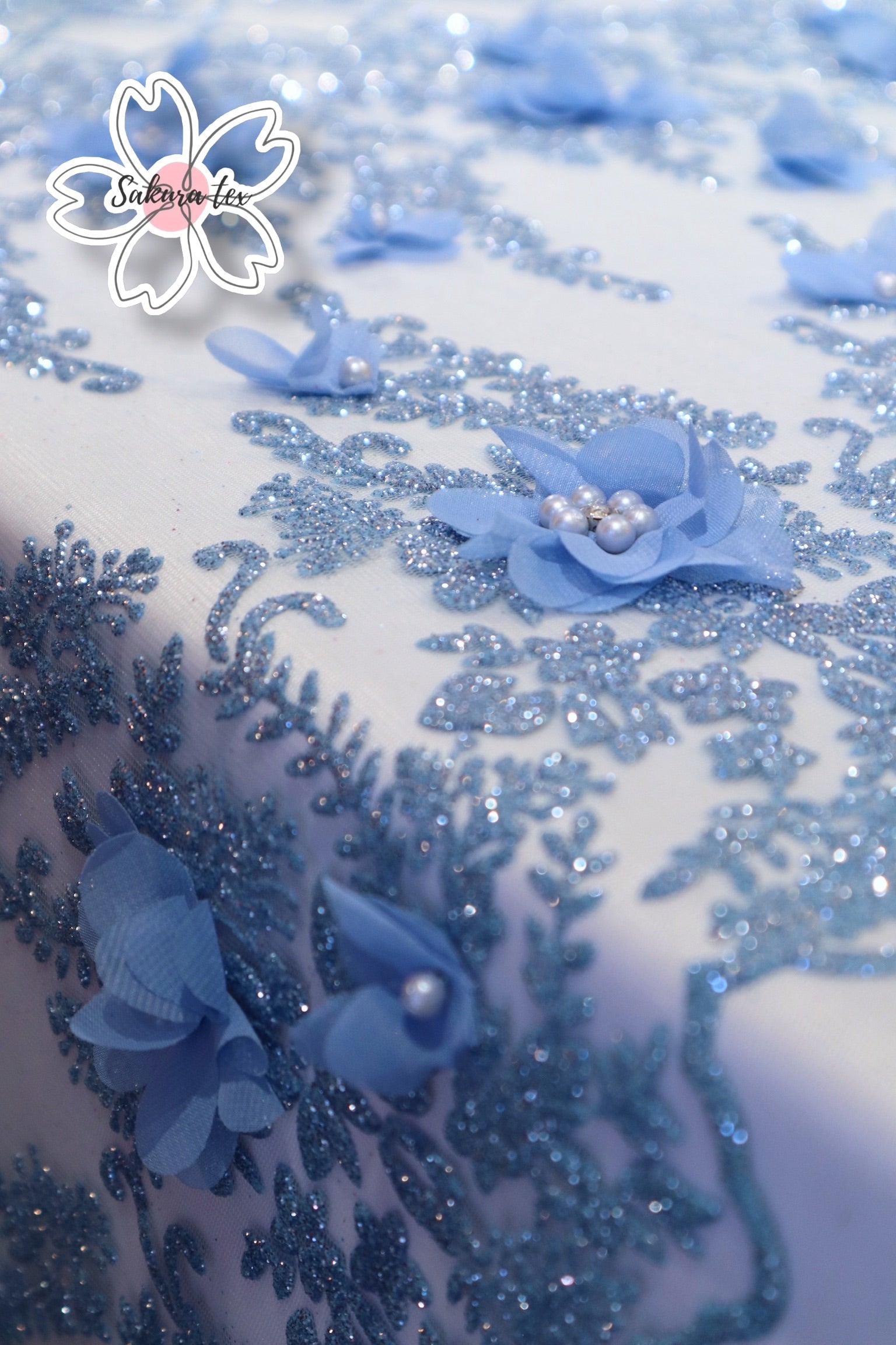 Blonda de Glitter con 6 Tiras y flores 3D, de 1 metro le salen 6 metros lineales!