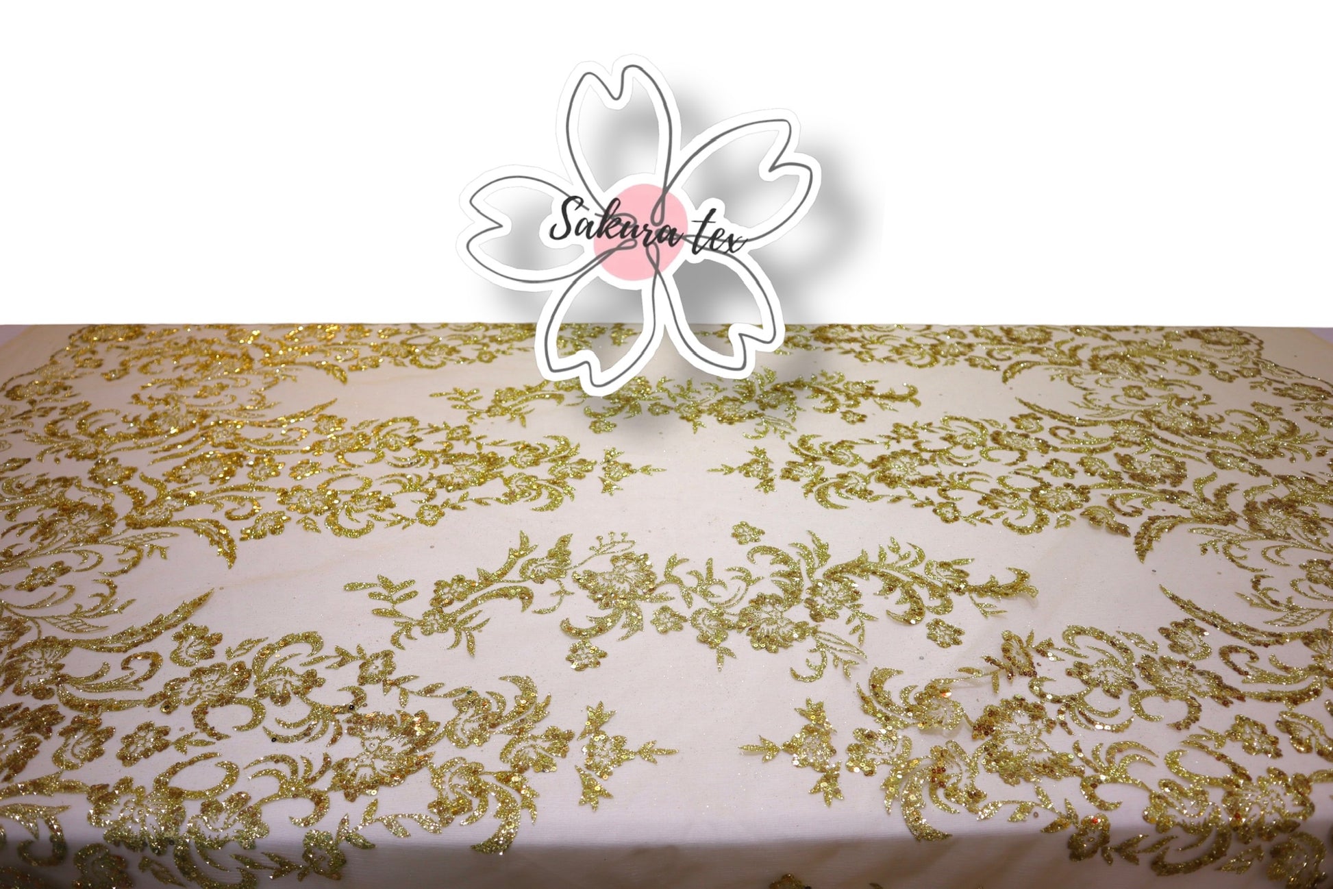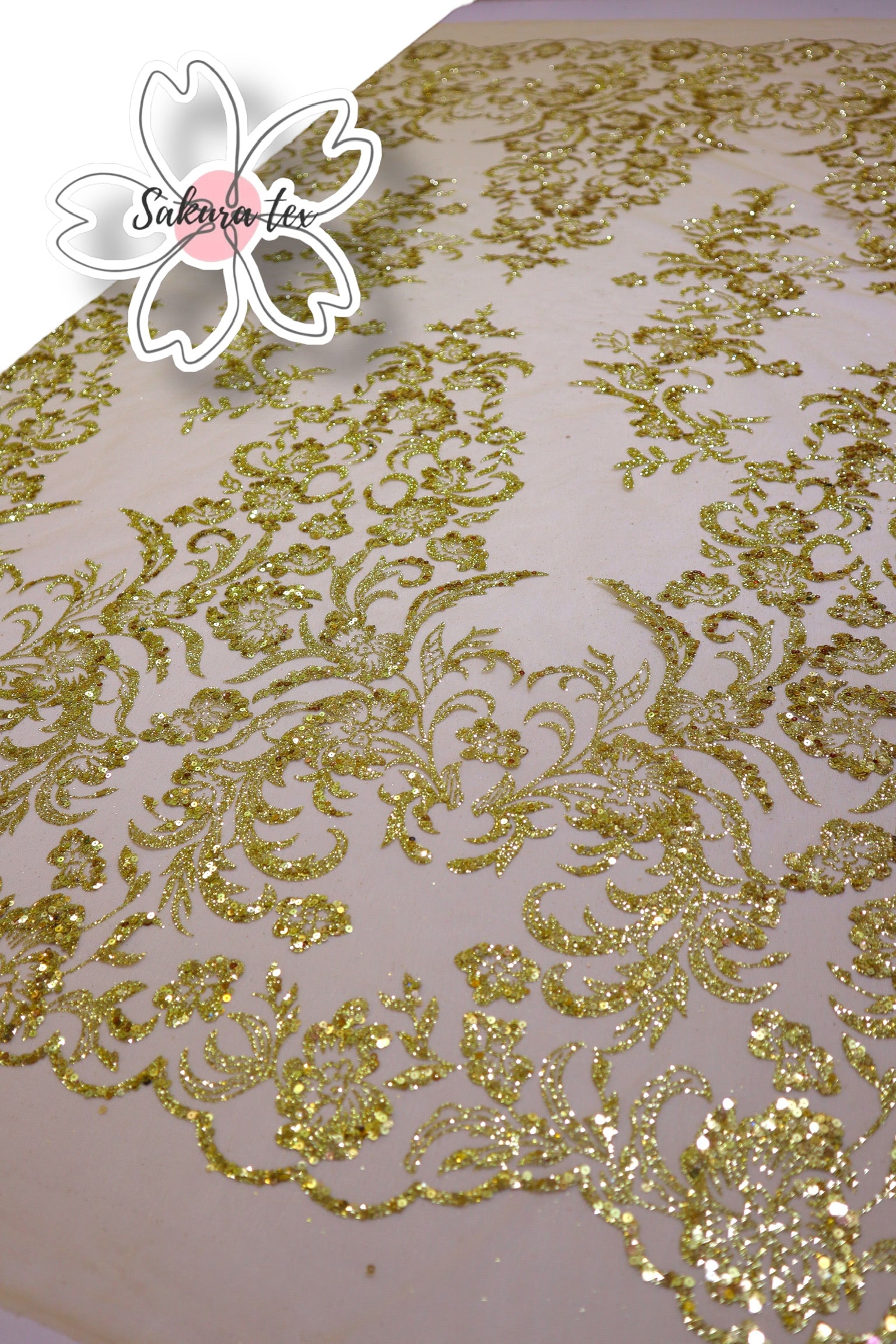 Blonda de Glitter con lentejuelas de 1.40m de ancho, doble blonda de 80cm cada una. Dale valor agregado a tus vestidos con nuestras telas! ☺️