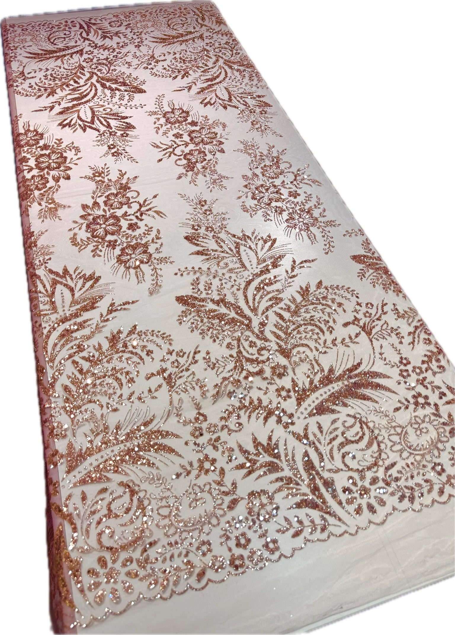 Blonda de Glitter con lentejuelas de 1.40m de ancho, doble blonda de 65cm cada una y aplicaciones recortables. Dale valor agragado a tus vestidos con nuestras telas ☺️