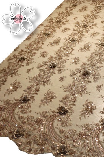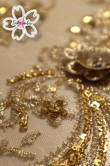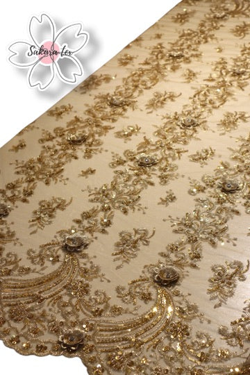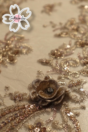 - 1 Metro de Tul Rebordado con pedreria y flores 3D "Bizantino”